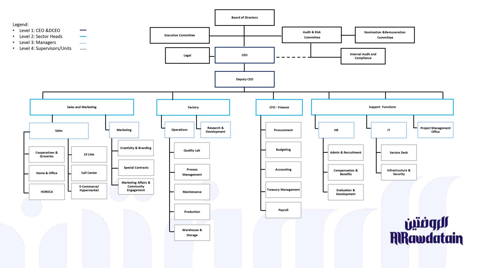 The following Diagram represents Rawdatain Organizational Structure